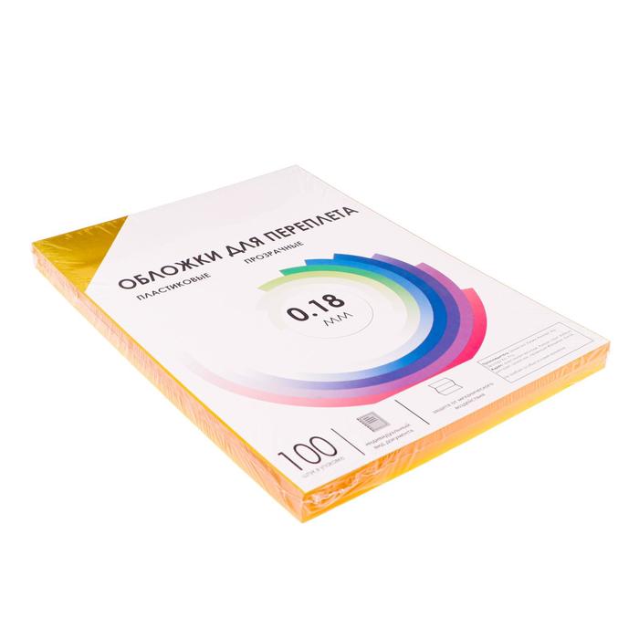 Обложки для переплета A4, 180 мкм, 100 листов, пластиковые, прозрачные желтые, Гелеос — Характеристики