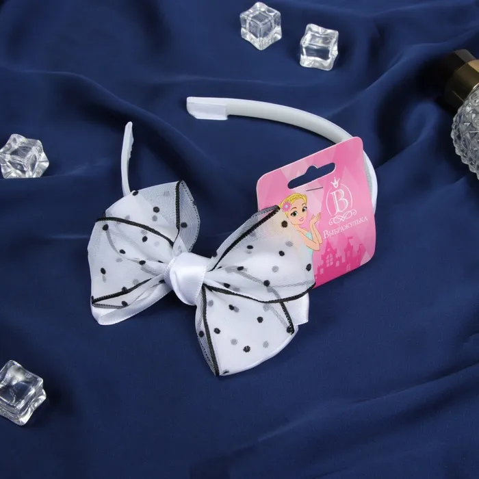 Ободок для волос «Бантик крошка», нежность горох, 10×1 см, чёрно-белый — Характеристики