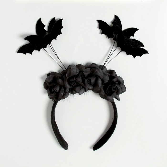 Карнавальный ободок «Летучие мышки» — это оригинальный аксессуар для создания яркого и запоминающегося образа. Чёрные летучие мыши с цветами привлекут внимание всех окружающих.