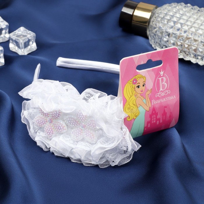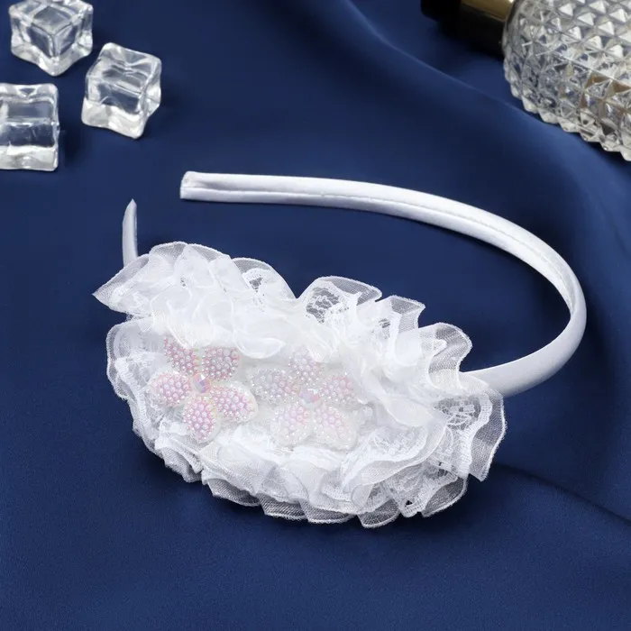 Ободок для волос «Малышка», пышность цветки, 0.9 см, белый