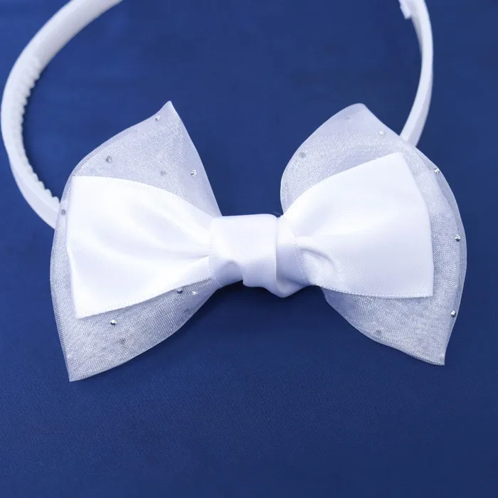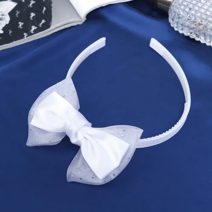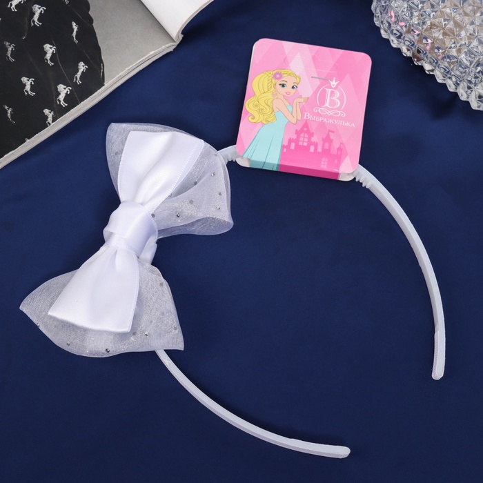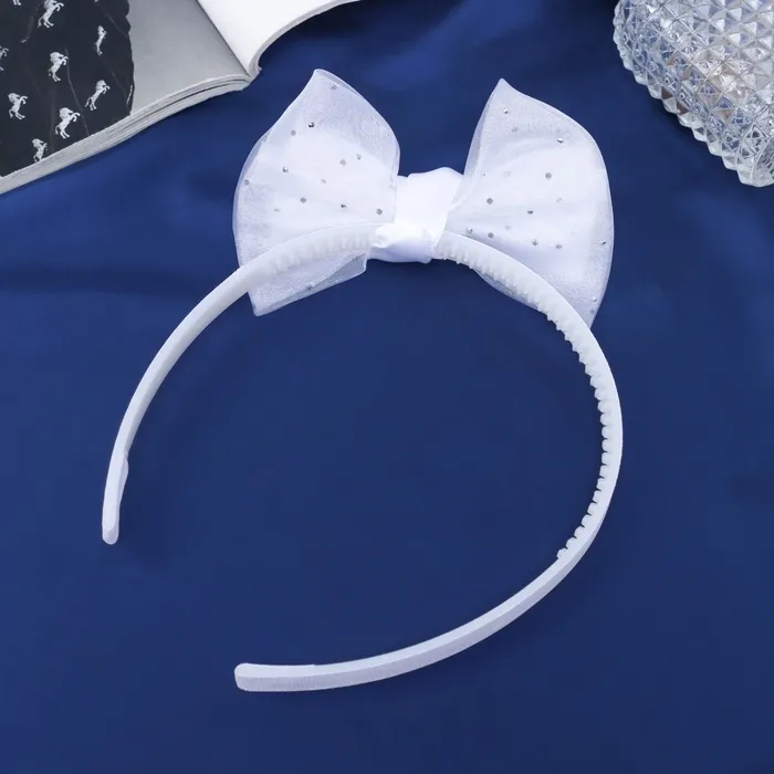 - Очаровательный дизайн: эффектный белый бантик, мерцающий блеском, сделает любую прическу праздничной и аккуратной. Это не просто ободок, а изюминка, которая создаст настроение и уверенность в себе.