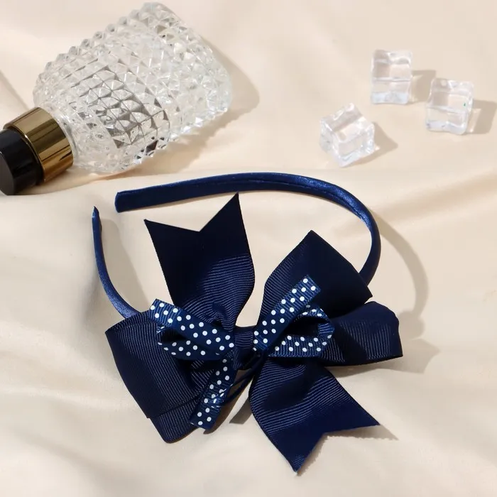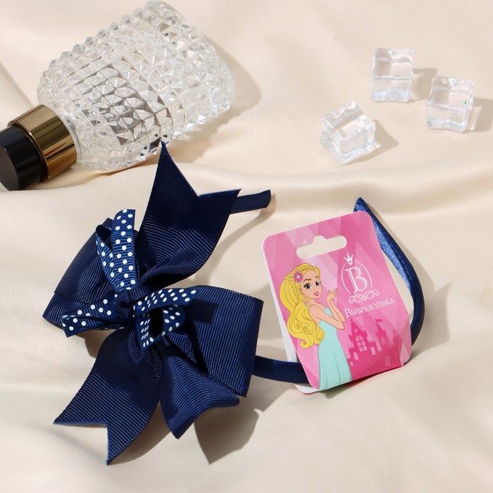 Ободок для волос «Школьница», бант в горошек, 1 см, синий — Характеристики