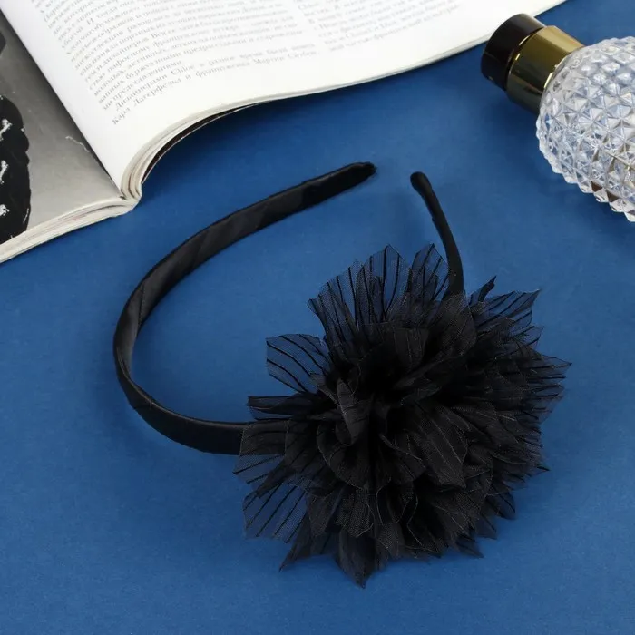 Очаровательный чёрный ободок для девочек — это не просто аксессуар, а стильное дополнение к образу, идеально подходящее для выпускного в детском саду. Сочетание текстиль и пластик обеспечивает долговечность и комфорт. Этот детский ободок, украшенный аккуратным бантом в виде цветка, добавит элегантности и утончённости.
