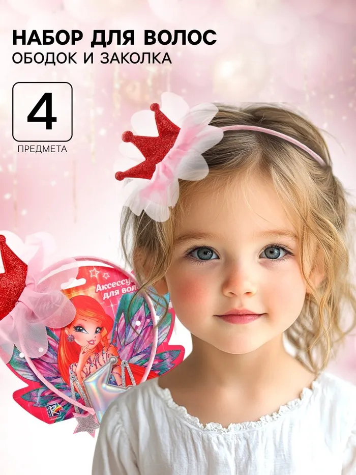 Ободок и заколка для волос 3 шт, набор аксессуаров для девочки «Корона», Винкс — Характеристики