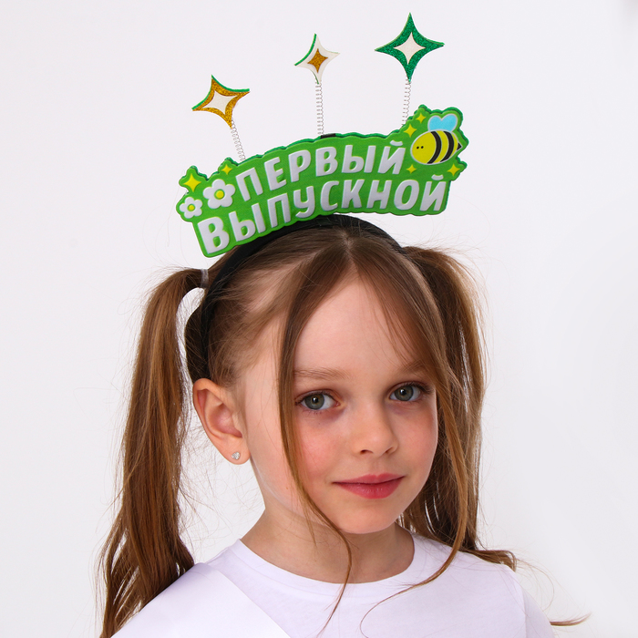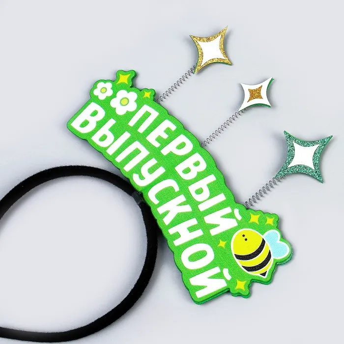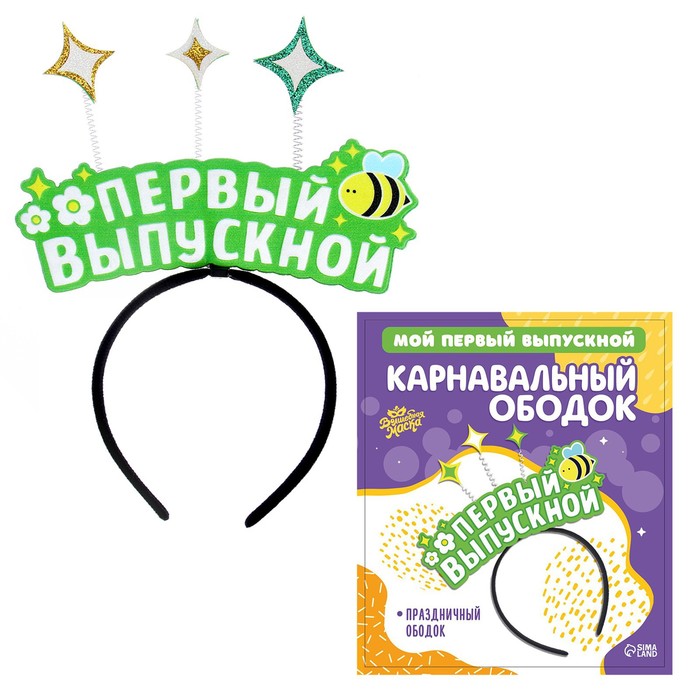 Карнавальный ободок «Мой первый выпускной» подойдёт для торжественных мероприятий и тематических фотосессий. Аксессуар с яркой надписью и звёздочками на пружинках позволит вашему ребёнку выглядеть стильно и оригинально и добавит праздничного настроения в этот особенный день.