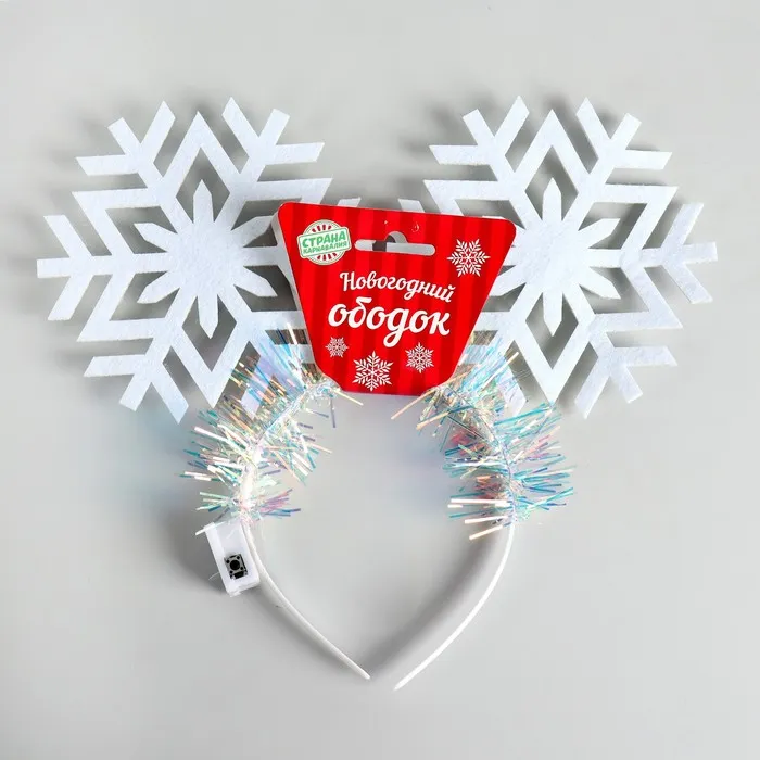 Ободок новогодний карнавальный «Снежинки», световой, виды МИКС — Характеристики
