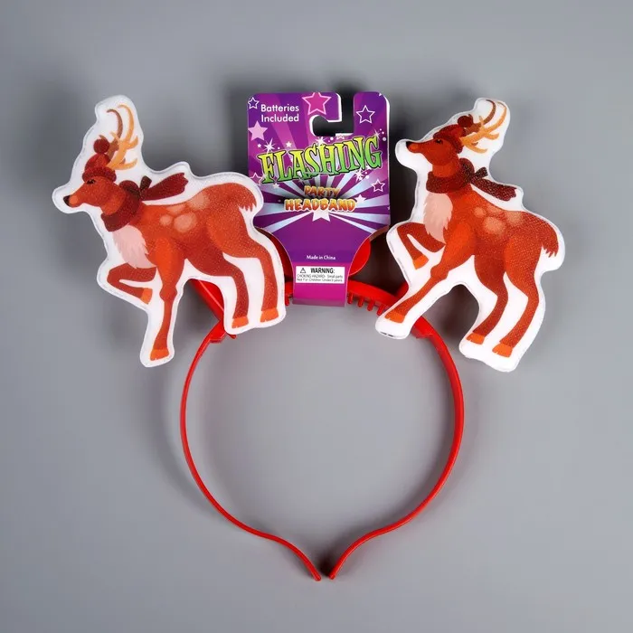 Ободок светодиодный «Олени» 18×16x3 см, 2 LED, батарейки AG10×3 (в комплекте), мерцание, свечение мульти