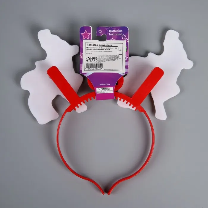 Ободок светодиодный «Олени» 18×16x3 см, 2 LED, батарейки AG10×3 (в комплекте), мерцание, свечение мульти — Характеристики
