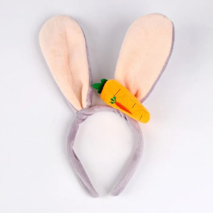 Ободок «Зайка» с морковкой, серо-белый — Характеристики