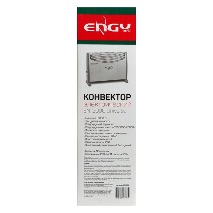 Обогреватель ENGY EN-2000 Universal, конвекторный, 2000 Вт, 25 м², белый — Характеристики