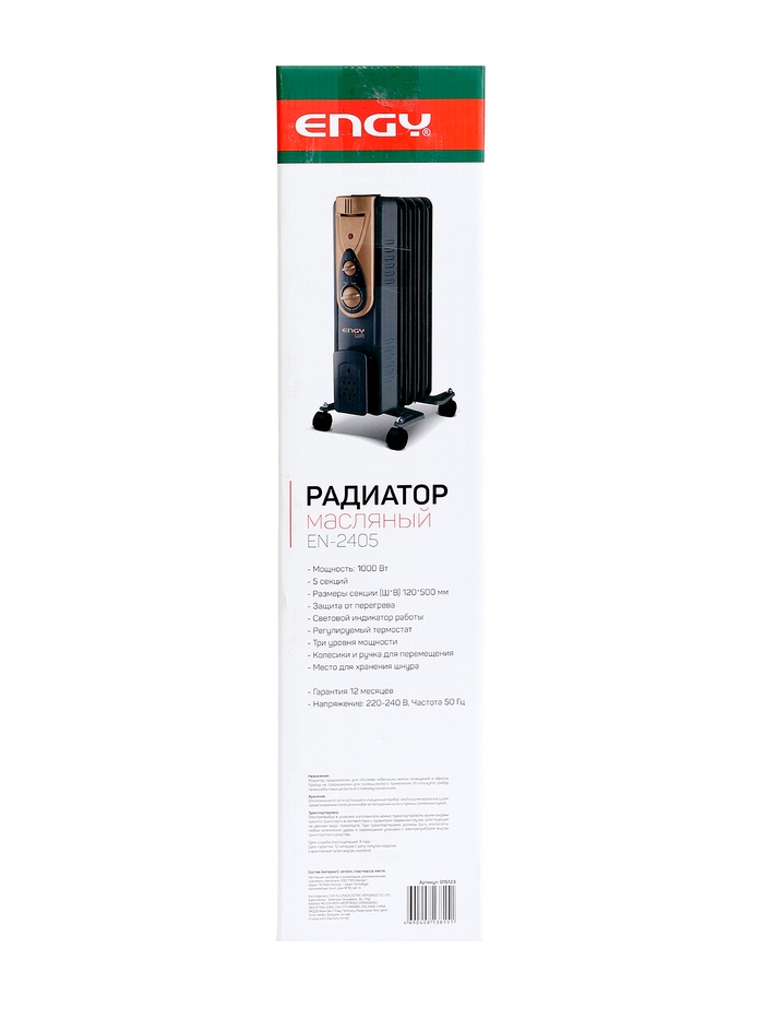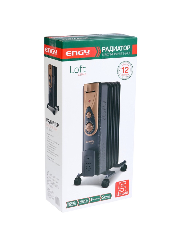 Обогреватель ENGY EN-2405 Loft, масляный, 1000 Вт, 5 секций, 3 уровня мощности — Характеристики
