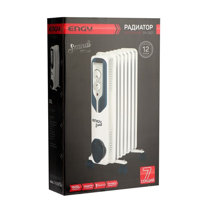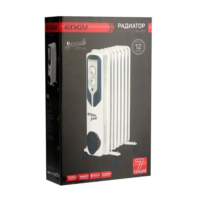 Обогреватель ENGY EN-2507, маслянный, 1500 Вт, 20 м², 7 секций, белый — Характеристики