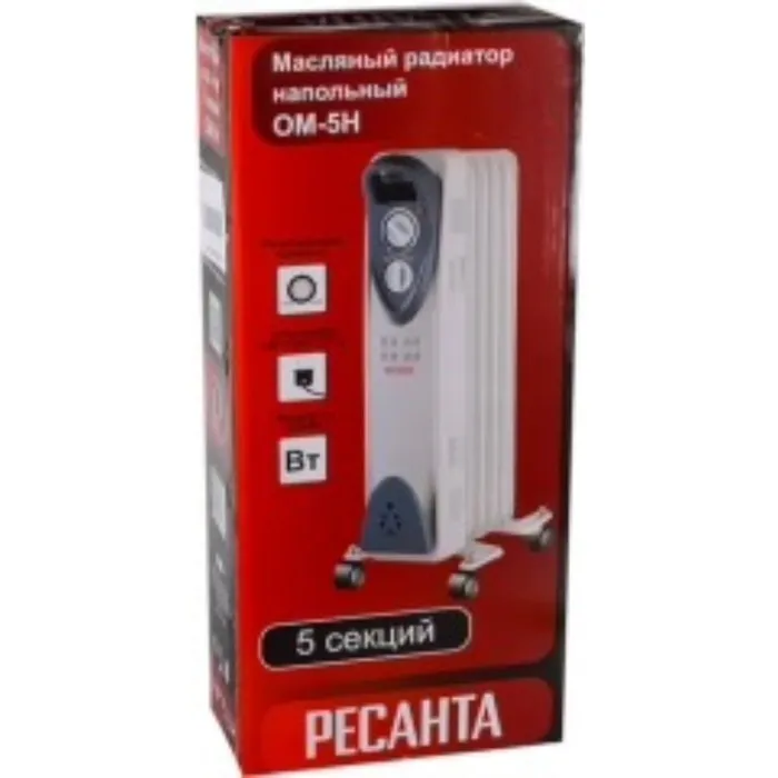 Масляный радиатор Ресанта предназначен для обогрева воздуха и создания комфортной атмосферы в холодное время года. В металлическом корпусе находится масло, нагреваемое до высокой температуры при помощи нагревательного элемента. Далее радиатор отдает тепло помещению. Масляный радиатор оснащён термостатом, что позволяет ему автоматически поддерживать в помещении заданную пользователем температуру. Существенным плюсом является и то, что он обладает низкой температурой корпуса, благодаря чему не выжигает кислород в помещении.