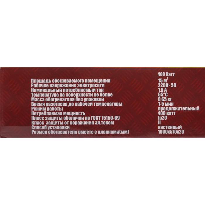 Обогреватель "Тепло Крыма" 448/2 Париж, инфракрасный, 400 Вт, 15 м² — Характеристики