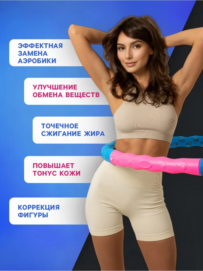 Тренировки с массажным обручем улучшают физическую форму и общее состояние тела. Обруч укрепляет мышцы живота, спины и бёдер, а также улучшает координацию и гибкость. Регулярные занятия способствуют снижению веса, формированию талии. Упражнения с обручем оказывают положительное воздействие на кровообращение и повышают общий тонус организма.