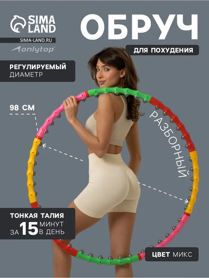 Обруч массажный ONLYTOP, d=98 см, разборный, цвет МИКС — Характеристики