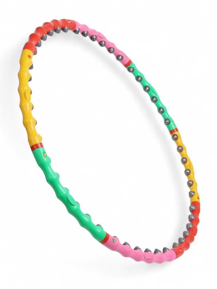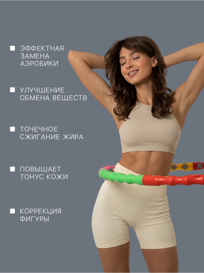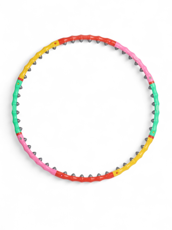 Тренировки с массажным обручем улучшает физическую форму и общее состояние тела. Обруч укрепляет мышцы живота, спины и бёдер, а также улучшает координацию и гибкость. Регулярные занятия способствуют снижению веса, формированию талии. Упражнения с обручем оказывают положительное воздействие на кровообращение и повышают общий тонус организма.