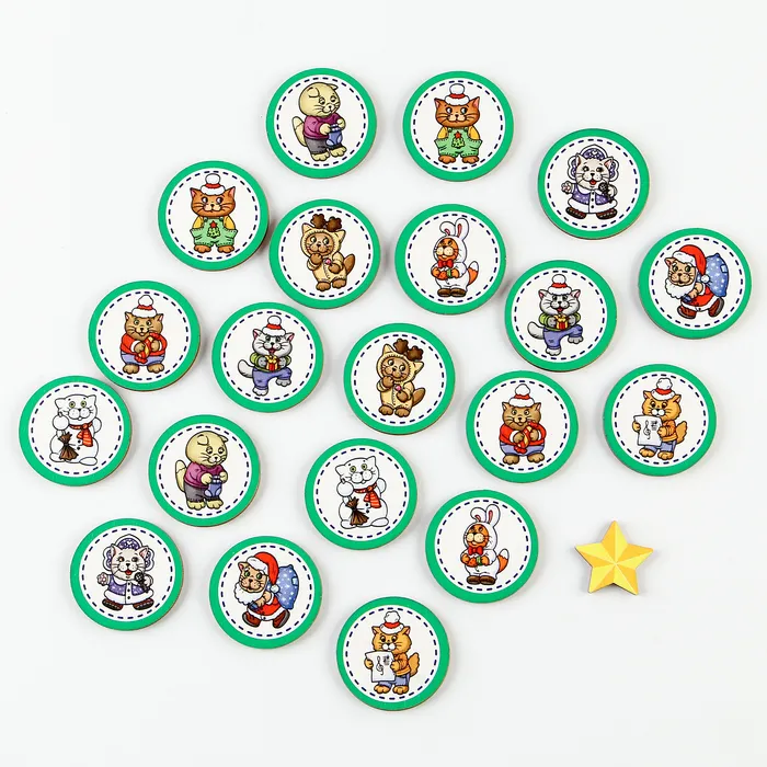 Обучающая игра «Новогоднее мемо: Забавные коты», 20 фишек — Характеристики