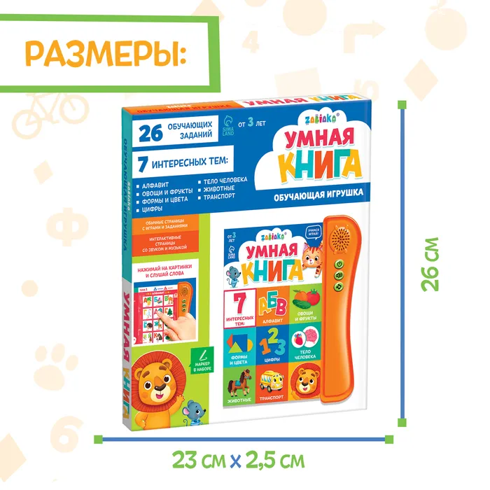 Обучающая игрушка «Умная книга» — это интерактивная книга, которая познакомит ребёнка с алфавитом русского языка и новыми словами. Занятия помогут улучшить навыки чтения и произношения. Обучающие задания помогут закрепить изученный материал.