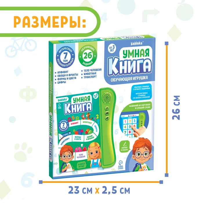 Обучающая игрушка «Умная книга» — это интерактивная книга, которая познакомит ребёнка с алфавитом русского языка и новыми словами. Занятия помогут улучшить навыки чтения и произношения. Обучающие задания помогут закрепить изученный материал.