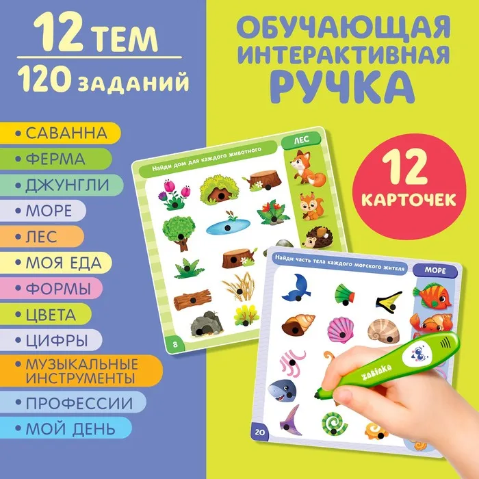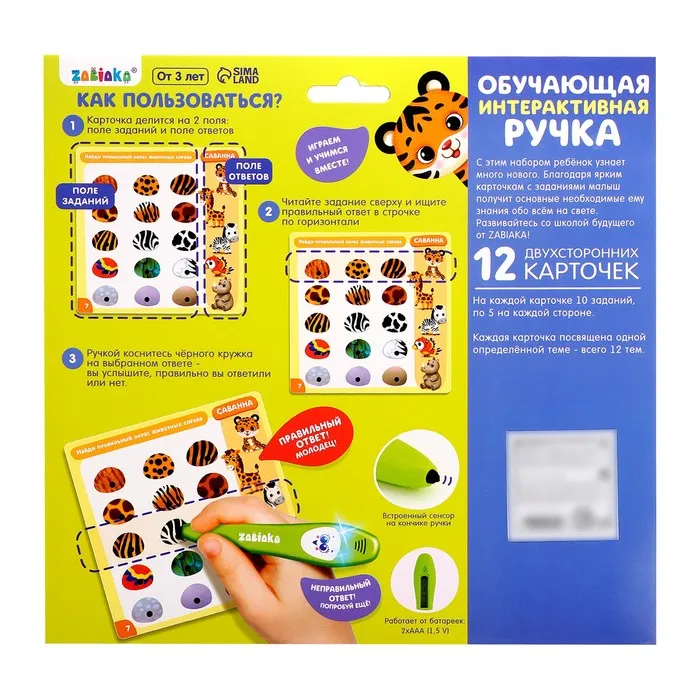 С умной игрушкой ребёнок откроет много нового и интересного про животный мир, профессии, формы и многое другое! Также малыш научится правильно держать ручку в руке.