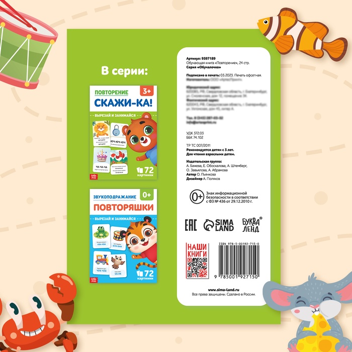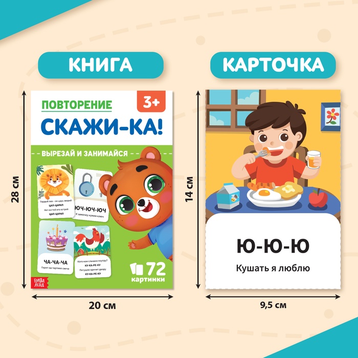 Обучающая книга «Повторение. Скажи-ка» — это набор дидактических карточек для педагогов и родителей, которые помогут улучшить качество речи у детей.