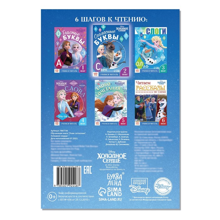 Данная книга — это второй шаг на пути к самостоятельному чтению. Вместе с любимыми героями «Холодного сердца» изучайте согласные буквы, а затем переходите к изучению слогов.