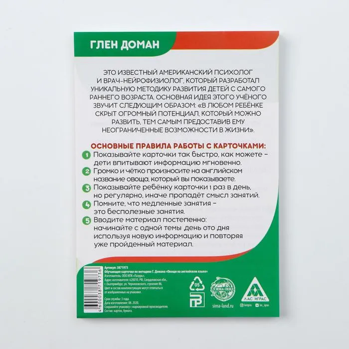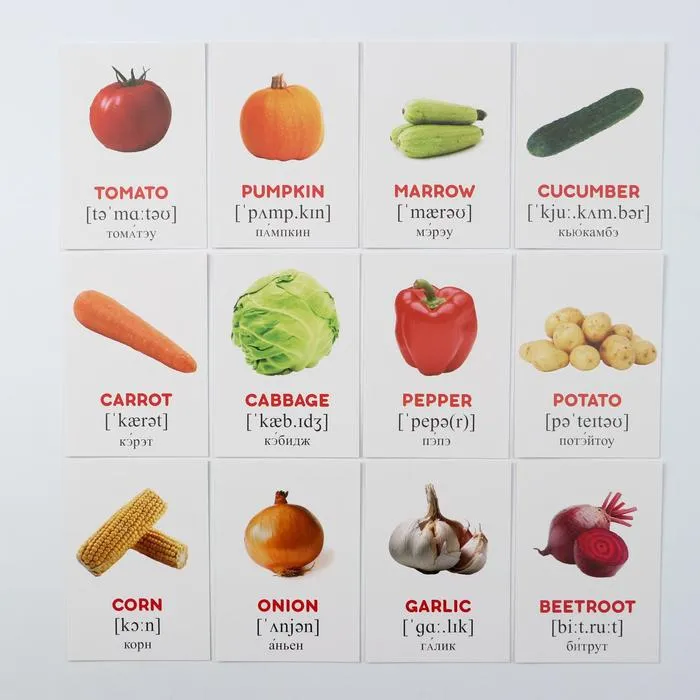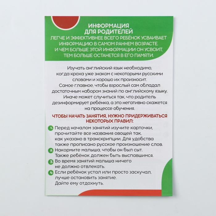 Обучающие карточки по методике Г. Домана «Овощи на английском языке», 12 карт, 2+ — Характеристики