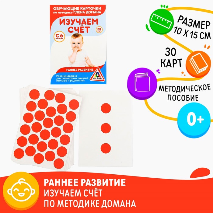 Обучающие карточки по методике Глена Домана «Изучаем счёт», 30 карт, А6 — Характеристики