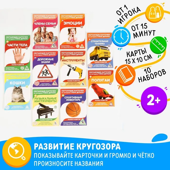 Обучающие карточки по методике Глена Домана «Расширяем кругозор», 10 штук, 2+, МИКС — Характеристики