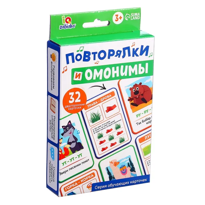 «Повторялки и омонимы» — обучающие карточки, созданные для увлекательного и полезного времяпрепровождения детей от 3 лет. Это не просто игра, а целый процесс познания, который помогает развивать воображение и речь. Карточки станут отличным выбором для родителей, которые хотят внести разнообразие в занятия с ребёнком.