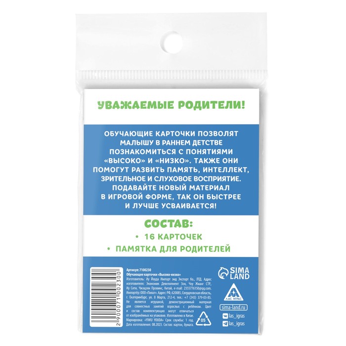 Обучающие карточки «Высоко-низко», 16 карт, 3+ — Характеристики