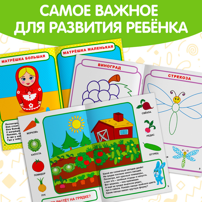 Серия иллюстрированных пособий рассчитана на годовой курс обучения. С ними вы научите малыша описывать и считать окружающие его предметы, познакомите с миром животных, расскажете, какие бывают овощи и фрукты, а также проведёте весёлые творческие занятия. Заниматься с такими книжками полезно и интересно!