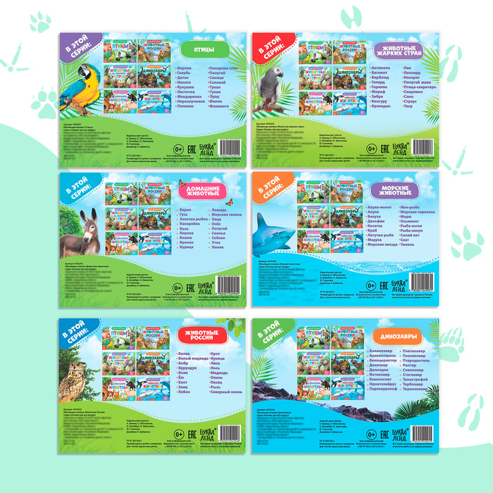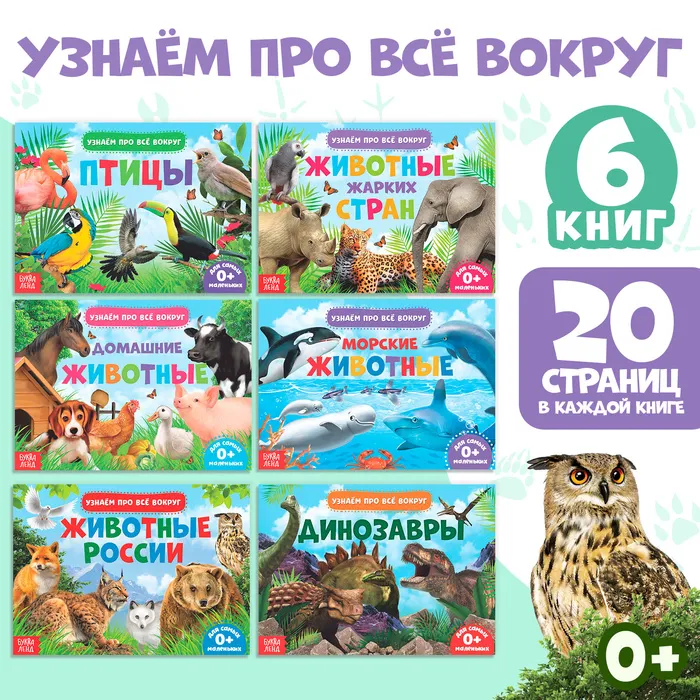 Обучающие книжки набор 6 шт. «Узнаём про всё вокруг», 108 животных и птиц — Характеристики