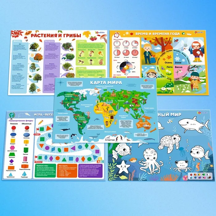 С яркими плакатами учиться и выполнять домашнее задание станет интереснее и веселее! Яркие картинки помогут вовлечь ребёнка в учебный процесс, потренировать внимание, логическое мышление и память.