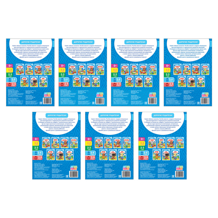 - В набор входит 7 ярких увлекательных книг по 14 страниц в каждой.
