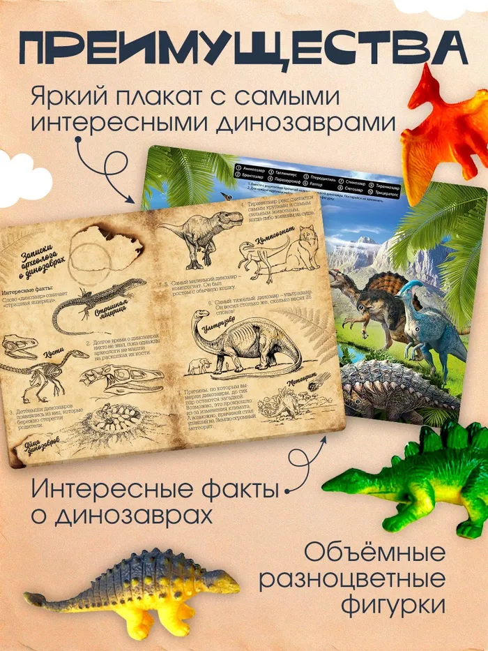 Обучающий набор «Эра динозавров», животные и плакат, по методике Монтессори, для детей — Характеристики