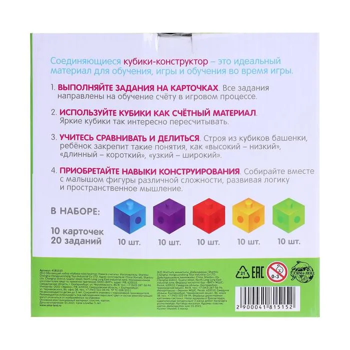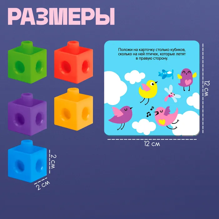 Обучающий набор «Кубики-конструктор: учимся считать» с заданиями, 50 кубиков, по методике Монтессори — Характеристики