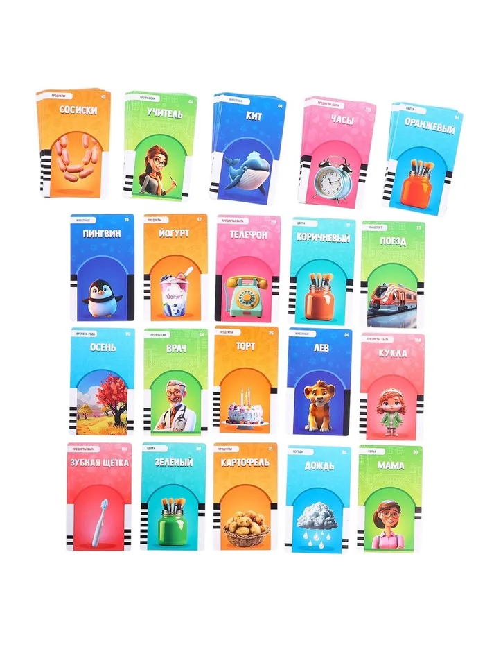 - В набор входит 60 карточек с разнообразными темами для изучения.