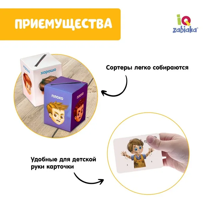 Обучающий набор «Сортер-копилка. Хорошо и плохо», по методике Монтессори, 20 карточек, 3+ — Характеристики