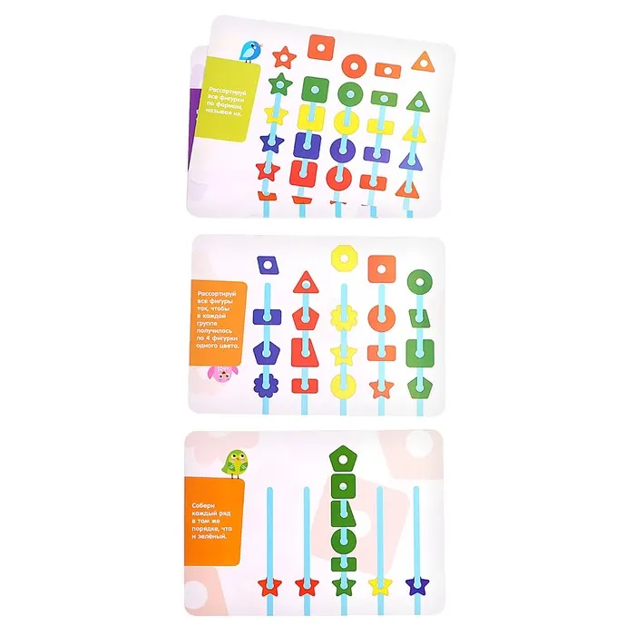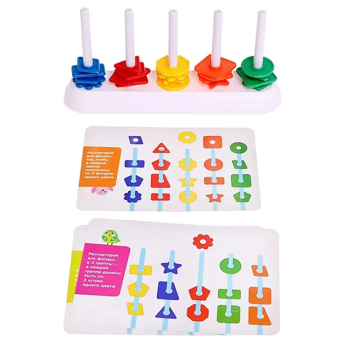 Малыши с радостью будут собирать пирамидку, развивая мелкую моторику и усидчивость. А детей постарше порадуют карточки с заданиями для сортировки фигурок по цвету и форме. Вы можете придумать свои игры и обучить ребёнка счёту.