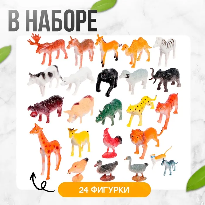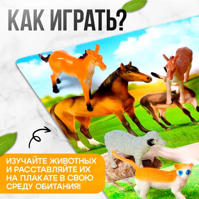 Обучающий набор «Весёлые животные»: животные и плакат, по методике Монтессори, 24 фигурки, 3+ — Характеристики