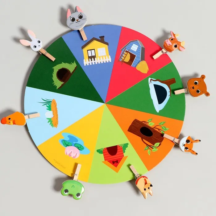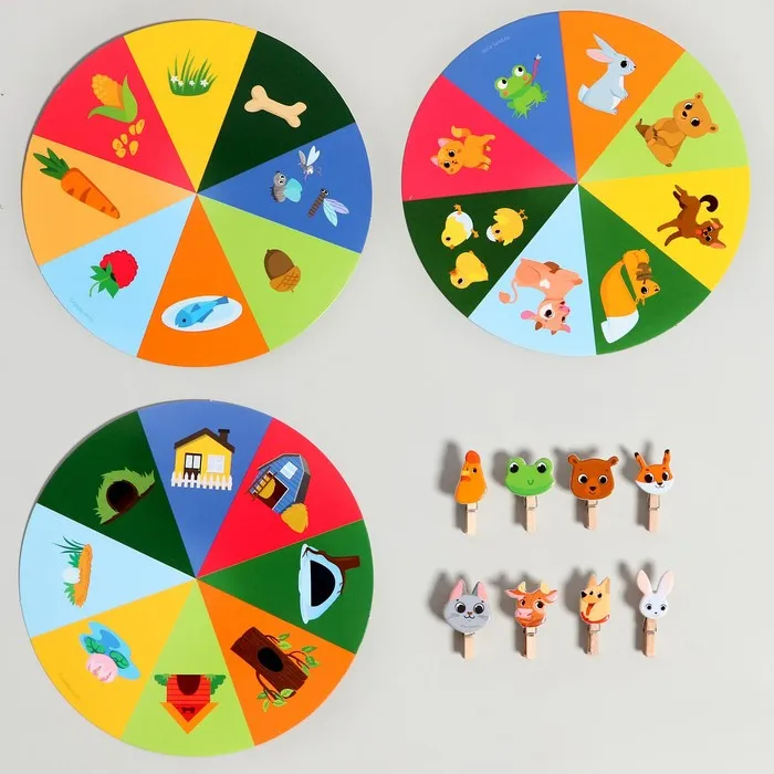Игра с прищепками — это не только весело, но и полезно. Ребёнок учится концентрироваться, развивает координацию движений и знакомится с разнообразием животного мира. Компактный размер набора делает его идеальным для путешествий или занятий вне дома.