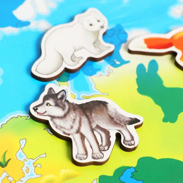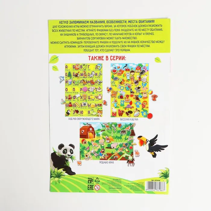 Положите игровое поле (плакат) на стол. Можно поместить фигурки в отдельный конверт или коробочку, откуда малыш будет вынимать их. Фигурки необходимо класть на соответствующее букве/животному поле. Для подсказки контуры фигурок повторены на плакате.