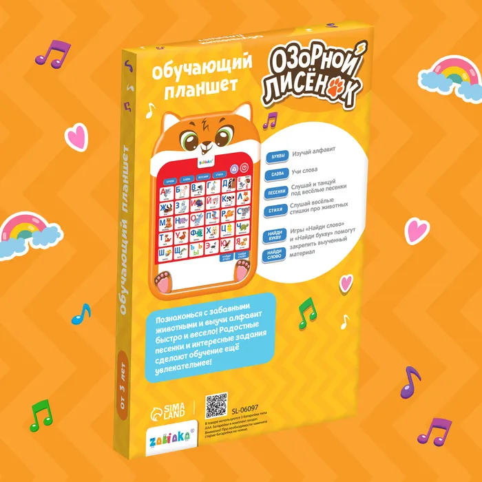 Обучающий планшет «Озорной лисёнок» — Характеристики