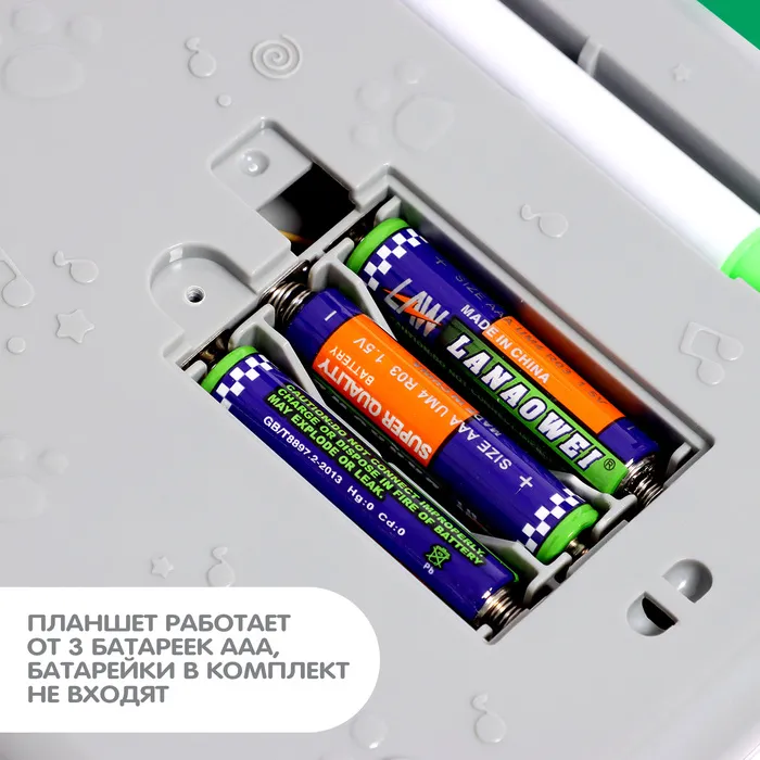 - Для работы необходимы 3 батарейки типоразмера AAA. Батарейки в комплект не входят.