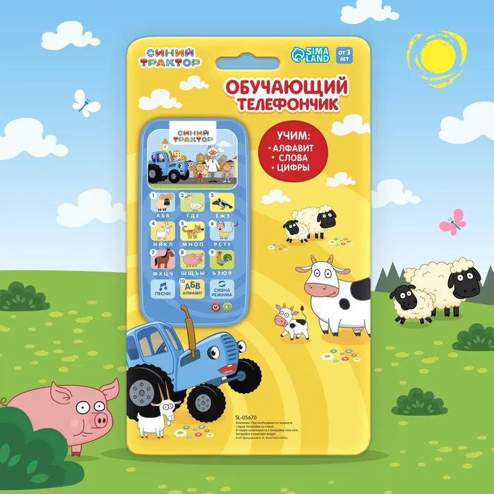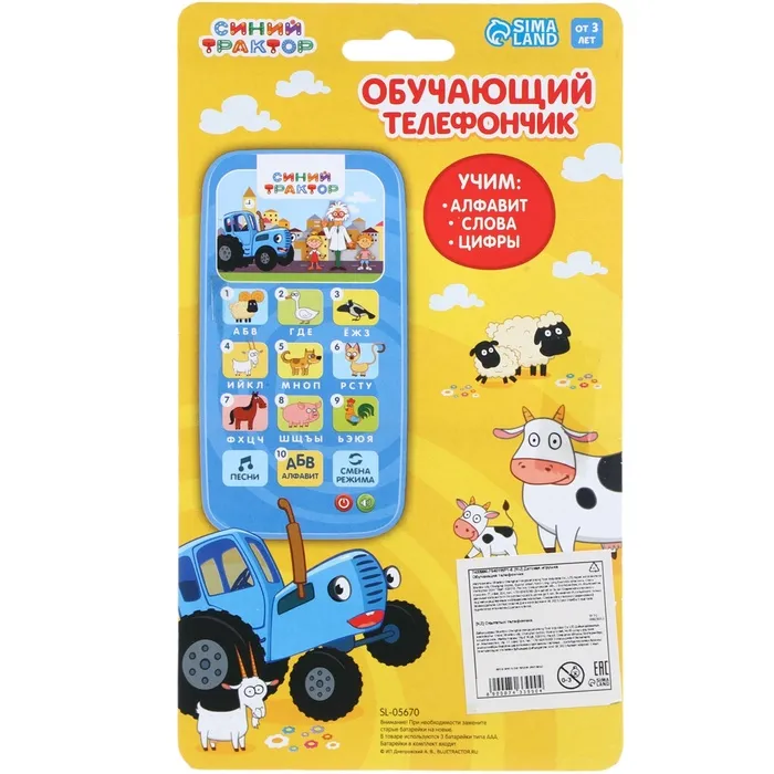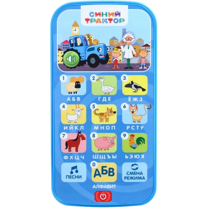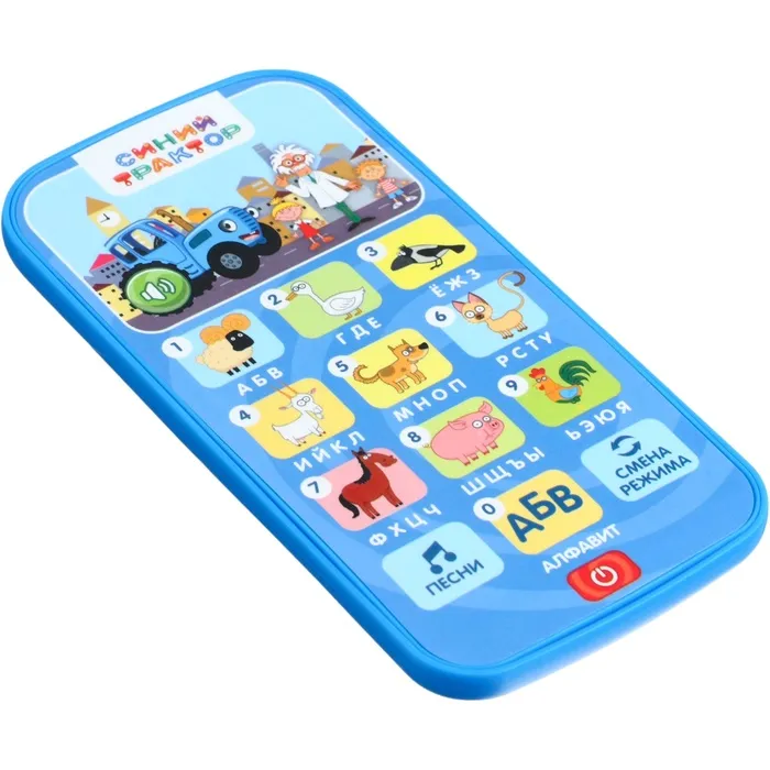 Обучающий телефон с любимыми героями из мультфильма «Синий трактор» станет отличным подарком для детей от 3 лет. Яркий и интерактивный, он поможет малышам освоить цифры, выучить алфавит и весёлые песенки.