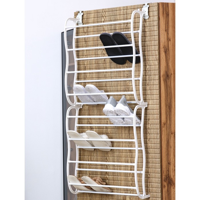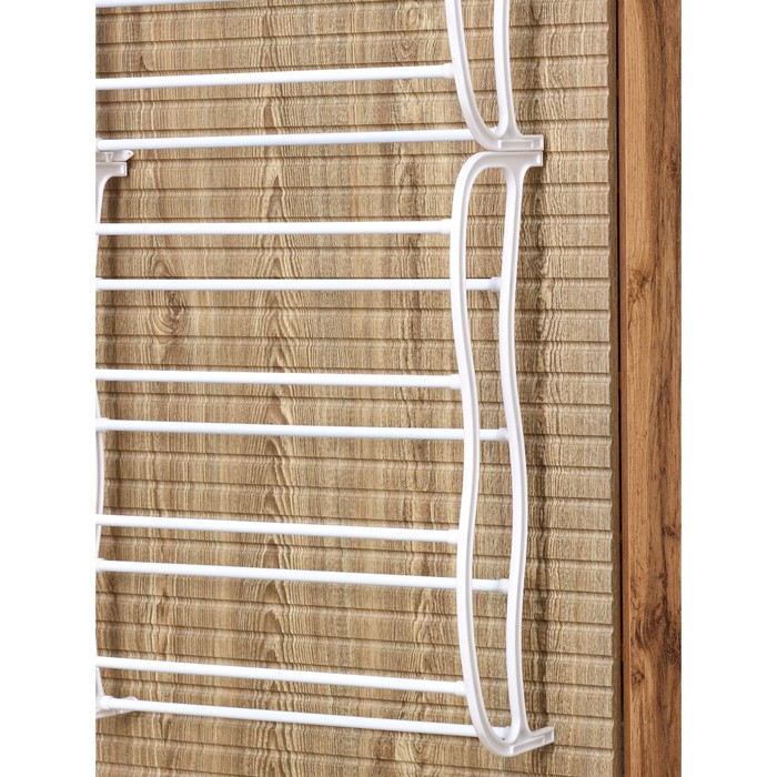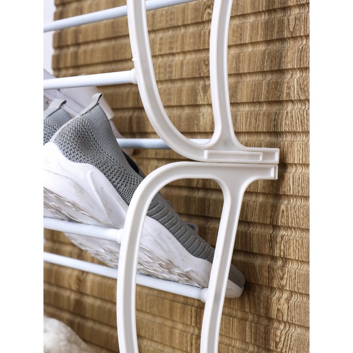 Теперь все перед глазами! Аккуратно расставьте обувь на 12 ярусов и наслаждайтесь легким выбором! Можно разместить до 36 пар, без риска для конструкции. Три секции можно организовать по цветам или фасонам. Легкий наклон ярусов не позволит обуви скользить, а белый цвет прекрасно впишется в любой интерьер, будет смотреться оригинально и благородно.