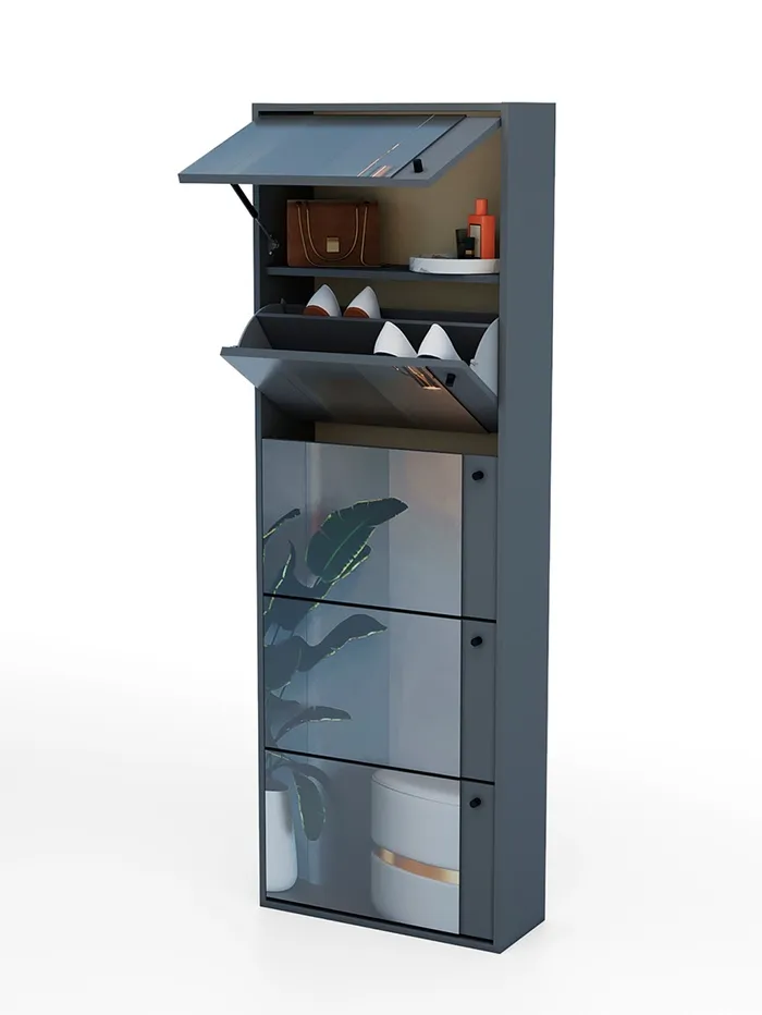 Внизу за откидными дверцами расположены 4 секции для хранения 8 пар обуви.