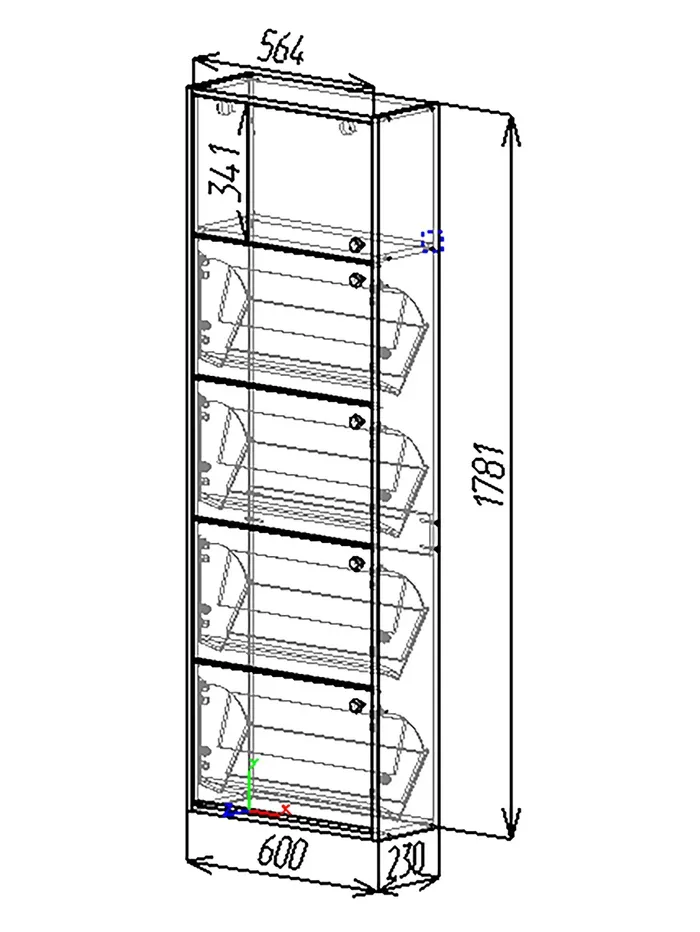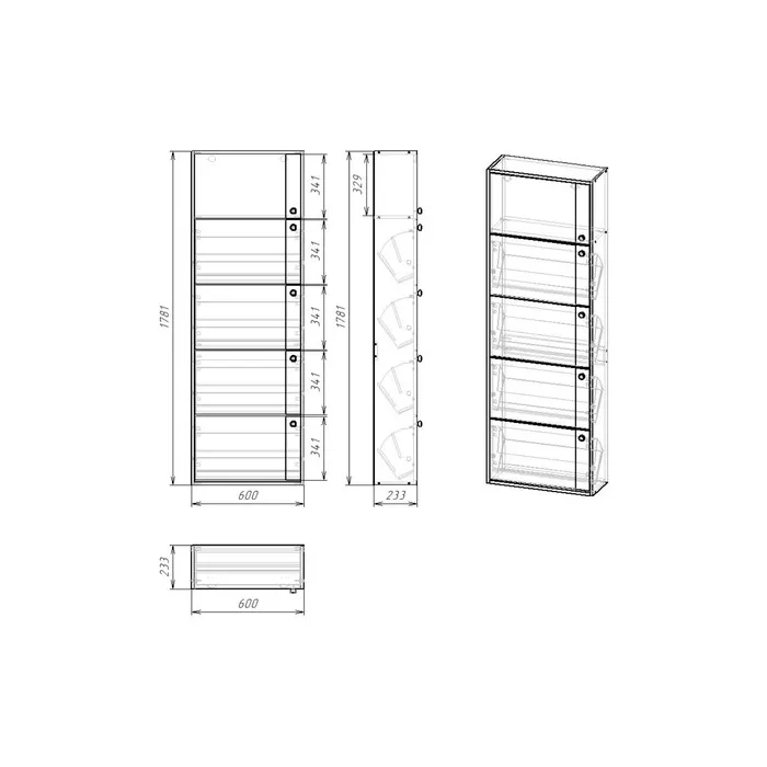 Обувница в прихожую «Клик Мебель. Родная», 5 ящиков, с зеркалом, 600×230×1780 мм, цвет тёмно-серый — Характеристики